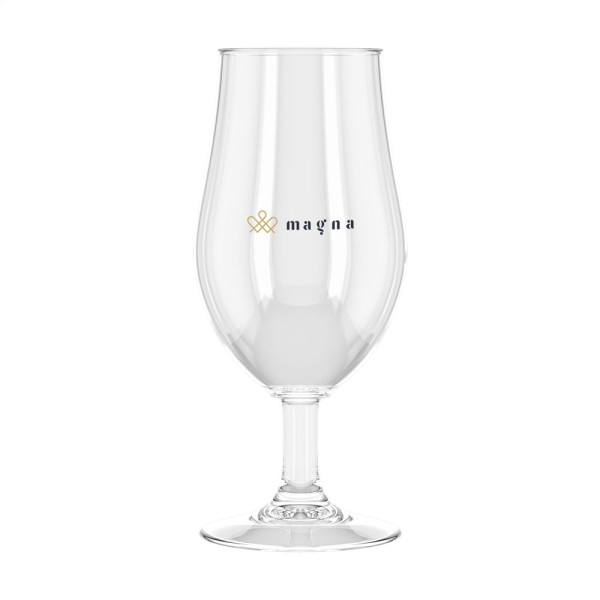 Kunststof bierglas op voet, van het merk HappyGlass. Speciaal ontworpen voor het schenken van speciaalbieren. Door de tulpvormige kelk komen de smaak en geur van het bier goed tot hun recht. Vervaardigd van helder, transparant copolyester Tritan. Nagenoeg onbreekbaar, licht in gewicht. Zeer geschikt voor gebruik op (sport)events, festivals en concerten waar dikwijls een glasverbod geldt. Dit kwaliteitsglas is geschikt voor meermalig gebruik. Dit product is vaatwasserbestendig. Voor behoud van de opdruk wordt met de hand afwassen aanbevolen. Inhoud 500 ml. Made in Holland.