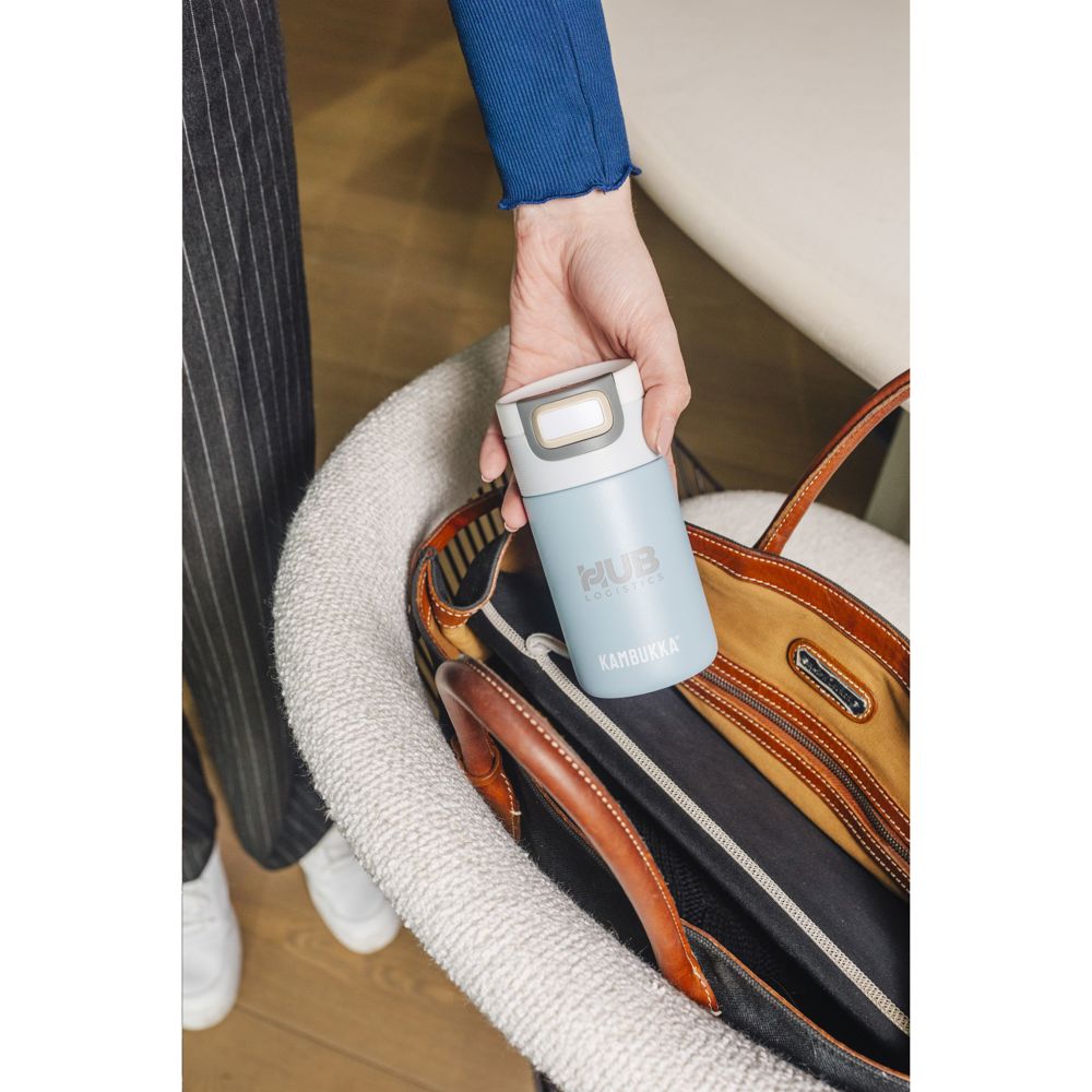De ideale thermosbeker voor onderweg van het merk Kambukka® • excellente kwaliteit • fraaie vormgeving • handig en klein formaat • vacuümgeïsoleerd 18/8 RVS • houdt dranken tot 5 uur warm en tot 11 uur koud • 3-in-1 deksel met 2 drinkposities: even drukken en snel een slok nemen of volledig openen om zonder knoeien, net zo comfortabel te drinken als uit een mok • gemakkelijk te reinigen dankzij Snapclean®: met één handeling verwijder je het binnenste mechanisme • universeel deksel: past ook op andere Kambukka® drinkflessen • het deksel is vaatwasserbestendig - de beker met de hand afwassen • antislipbodem • 100% lekvrij • inhoud 300 ml. VOORRAAD INFORMATIE: Tot 1.000 stuks beschikbaar binnen 6 dagen. Uitzonderingen voorbehouden.