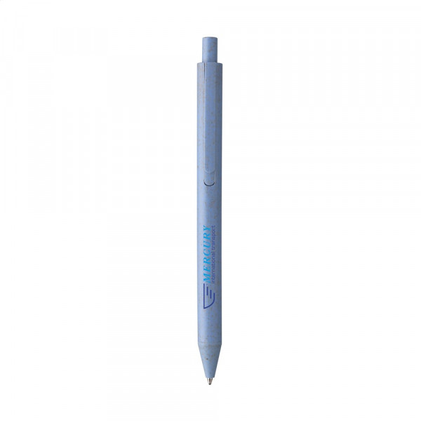 Blauwschrijvende balpen gemaakt van 50% PP en 50% tarwestro. De houder, clip en drukknop zijn gemaakt van hetzelfde materiaal en de gehele pen is stijlvol uitgevoerd in één kleur. Gedeeltelijk biologisch afbreekbaar.
