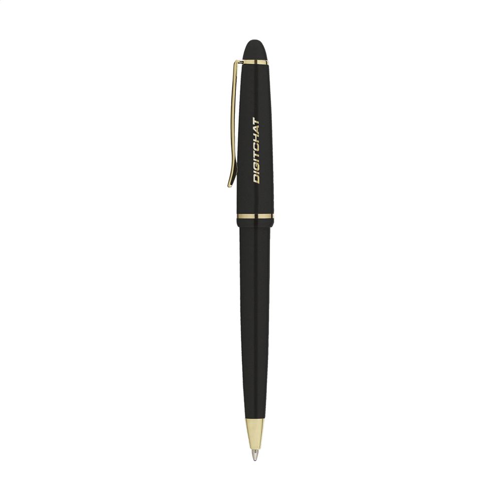 Blauwschrijvende balpen met gepolijste houder, vergulde, sierlijke clip en puntstuk en...meer