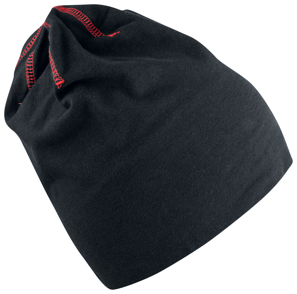 Moderne muts gemaakt van single jersey voor een optimaal draagcomfort. De muts is afgewerkt met opvallende flatlock naden op de bovenzijde voor een unieke, onderscheidende uitstraling.