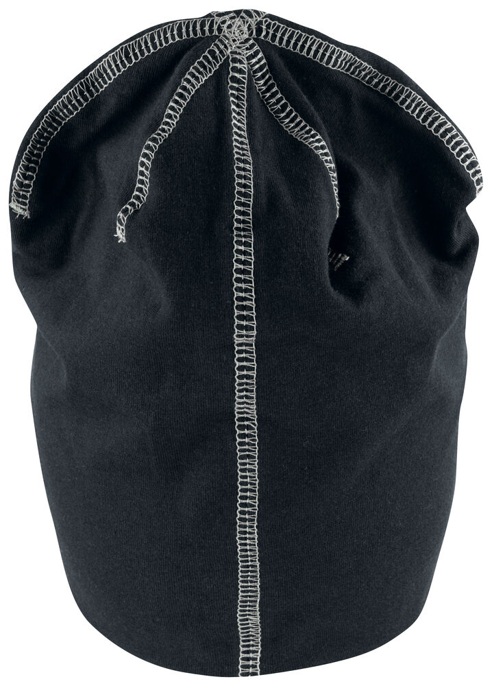 Moderne muts gemaakt van single jersey voor een optimaal draagcomfort. De muts is afgewerkt met opvallende flatlock naden op de bovenzijde voor een unieke, onderscheidende uitstraling.