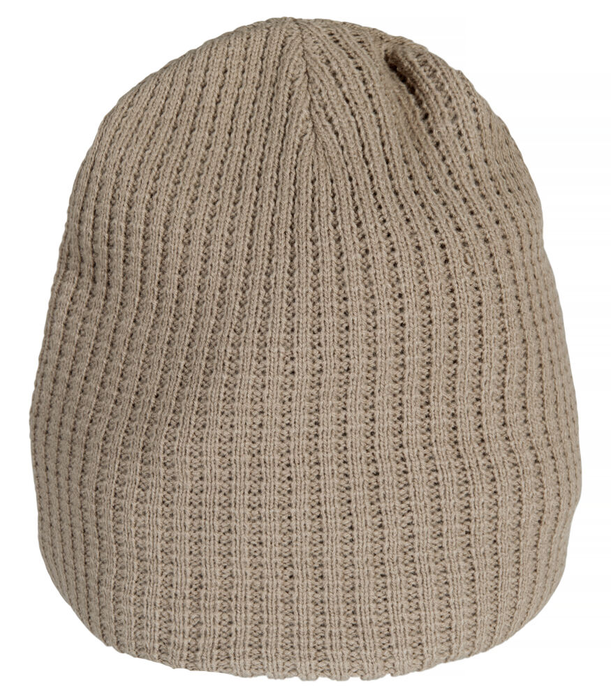Gebreide muts met dubbele structuur. Afgewerkt met vier naden aan de bovenkant voor een mooie pasvorm.